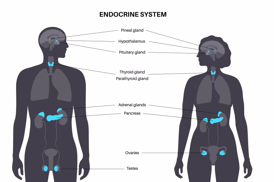 Endokrin sistem, vücudumuzda hormon adı verilen kimyasal haberci molekülleri üreten ve salgılayan bezlerden oluşur. Tiroid, pankreas, böbreküstü bezleri, hipofiz ve hipotalamus gibi organlar bu sistemin önemli parçalarıdır. Hormonlar, vücudun büyüme, gelişme, metabolizma, stres yönetimi, üreme ve uyku gibi birçok temel fonksiyonunu düzenler.